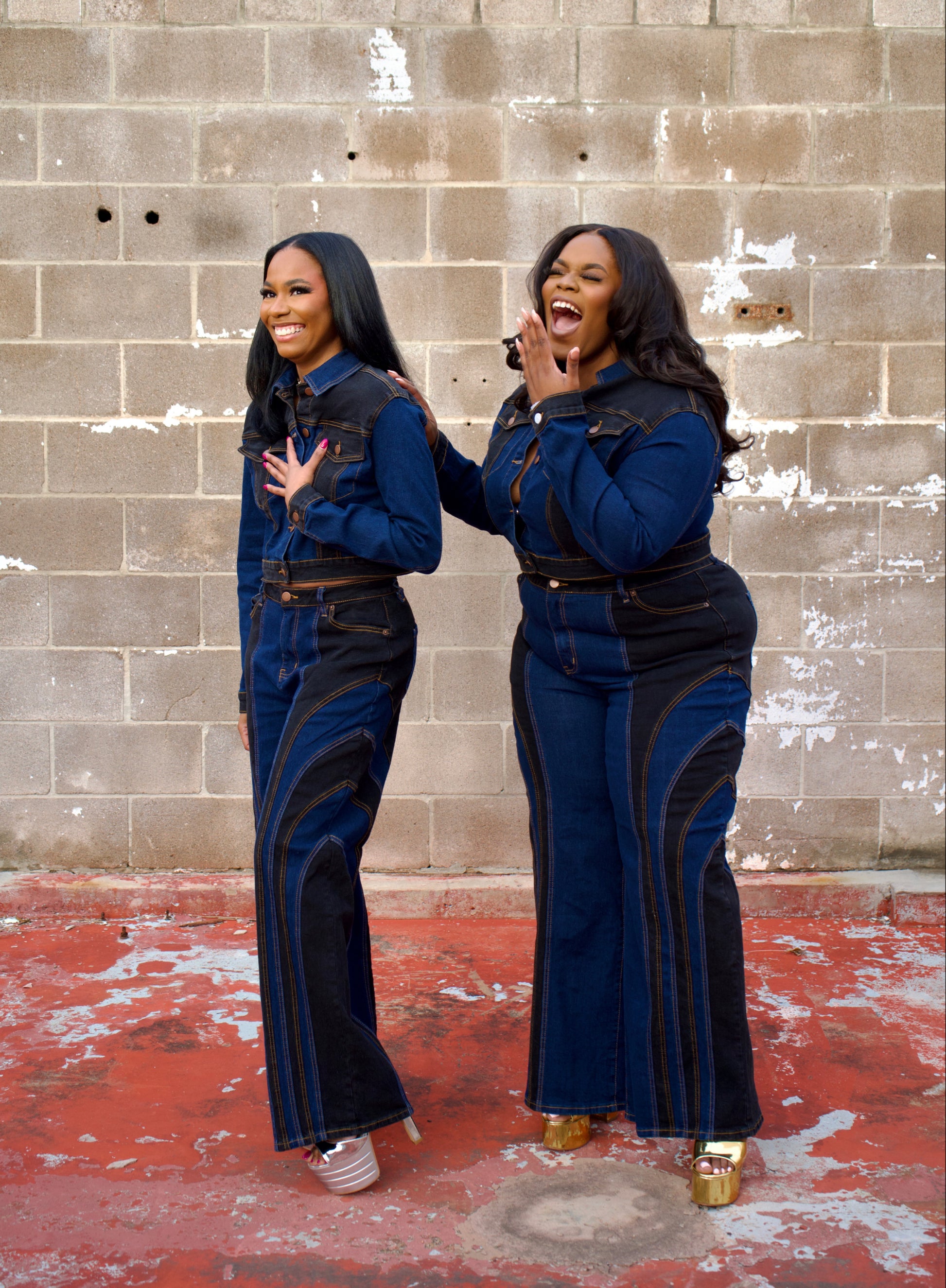- BLACK & BLUE PATCHWORK DESIGN DENIM STRAIGHT JEANS